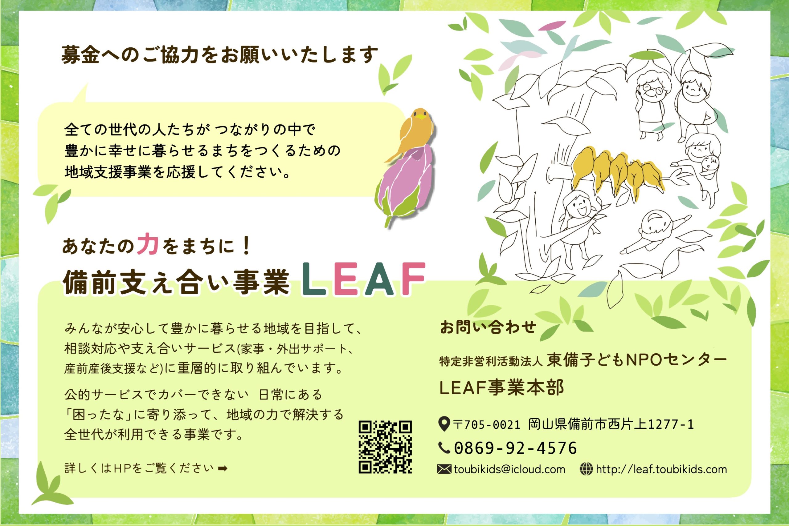 ②東備子どもNPOセンターかLEAFの事務所に直接ご持参